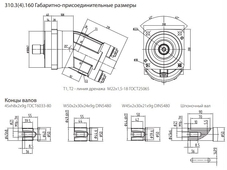 Диаметр вала: 45 мм - Кол-во шлицов 21 шт